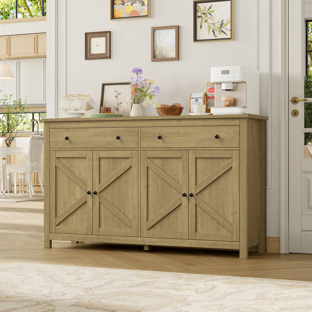 Homfa Farmhouse Kitchen Sideboard, 4-Doors 2-Drawers Wood Buffet Cabinet with Adjustable Shelves, Brown