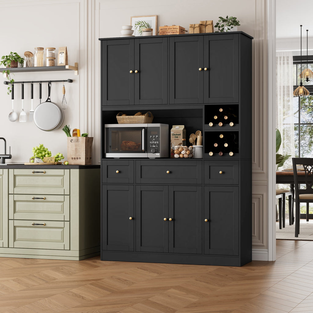 Homfa 72"H Kitchen Pantry Storage Cabinet, 8 Door Pantry Cabinet with Microwave Stand & Wine Rack for Kitchen, Dining Room, Black