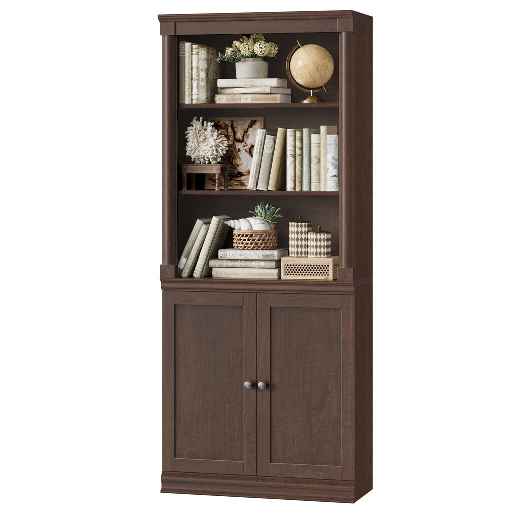 Homfa Bark Grain Bookcase with 2 Doors and Roman Pillars, 71.3 H File Cabinet with Adjustable Shelf, 5-Tier Bookshelf for Study Home Office, Reddish-Brown