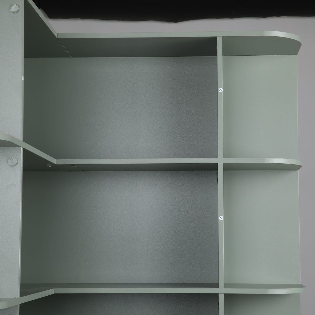 Homfa 73.9¡± Tall Corner Bookcase, 6 Tier L-Shaped Large Display Bookshelf with Curved Edges for Living Room Home Office Study, Green