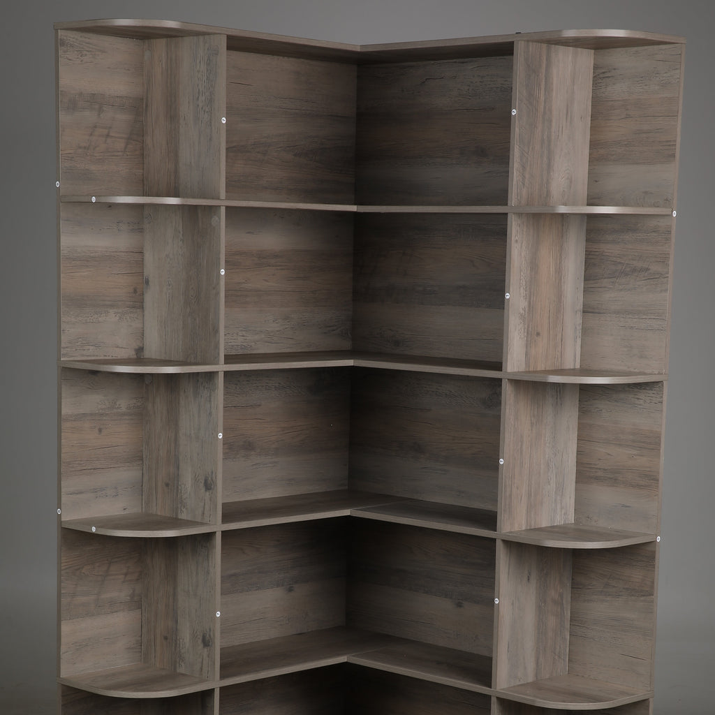Homfa 73.9¡± Tall Corner Bookshelf, 6 Tier L-Shaped Large Display Bookcase with Curved Edges for Living Room Home Office Study, Gray