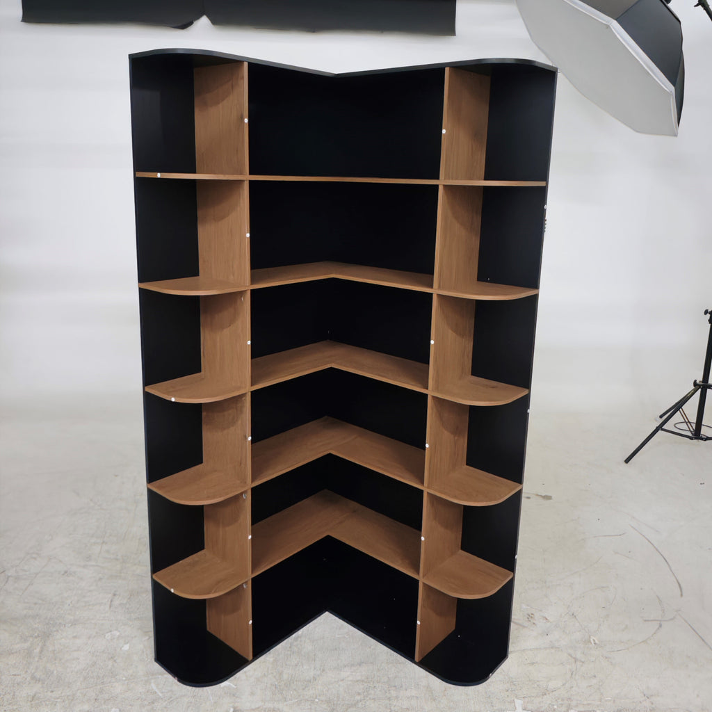 Homfa 73.9¡± Tall Corner Bookshelf, 6 Tier L-Shaped Large Display Bookcase with Curved Edges for Living Room Home Office Study, Black & Oak