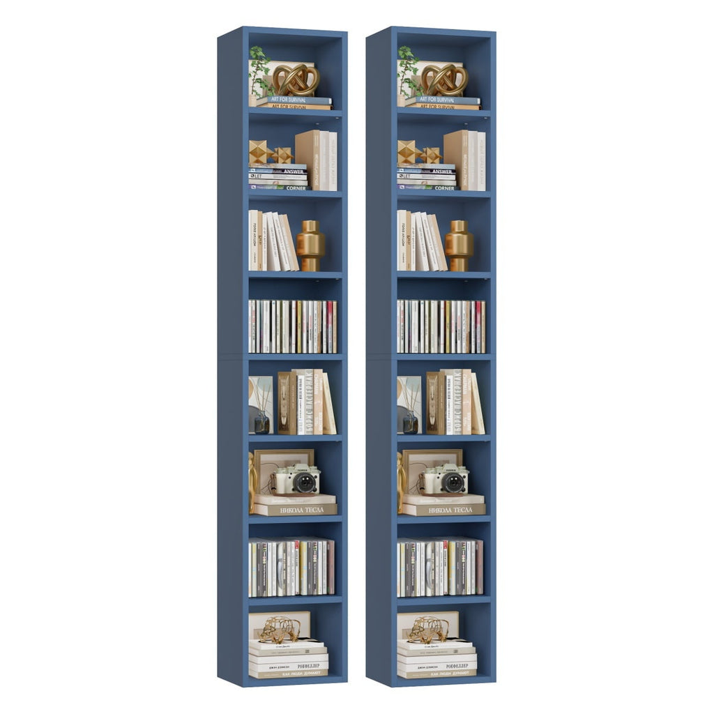 Homfa 8-Tier Media Tower, CD DVD Media Storage Unit with 4 Adjustable and 3 Fixed Shelves for Living Room Bedroom, 2PCS, Blue