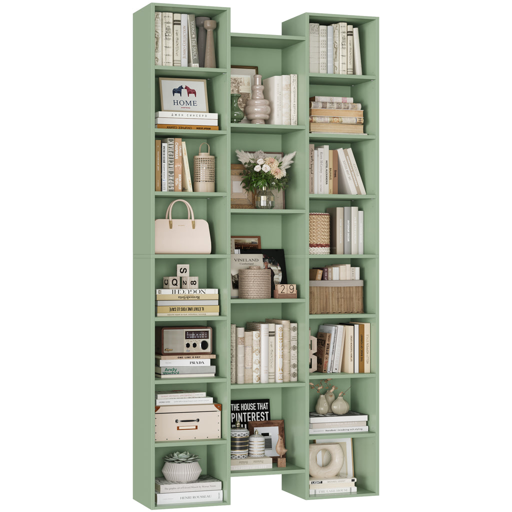Homfa 21-Cube Bookcase, 71¡¯¡¯ Tall Wooden Bookshelves with Adjustable Shelves, Triple Wide CD Display Storage Organizer Shelf for Home Office, Green