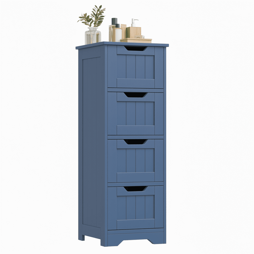 Homfa Bathroom Storage Cabinet, Free Standing Narrow Cabinet with 4 Drawers Entryway Storage Organizer for Living Room Bedroom, Blue