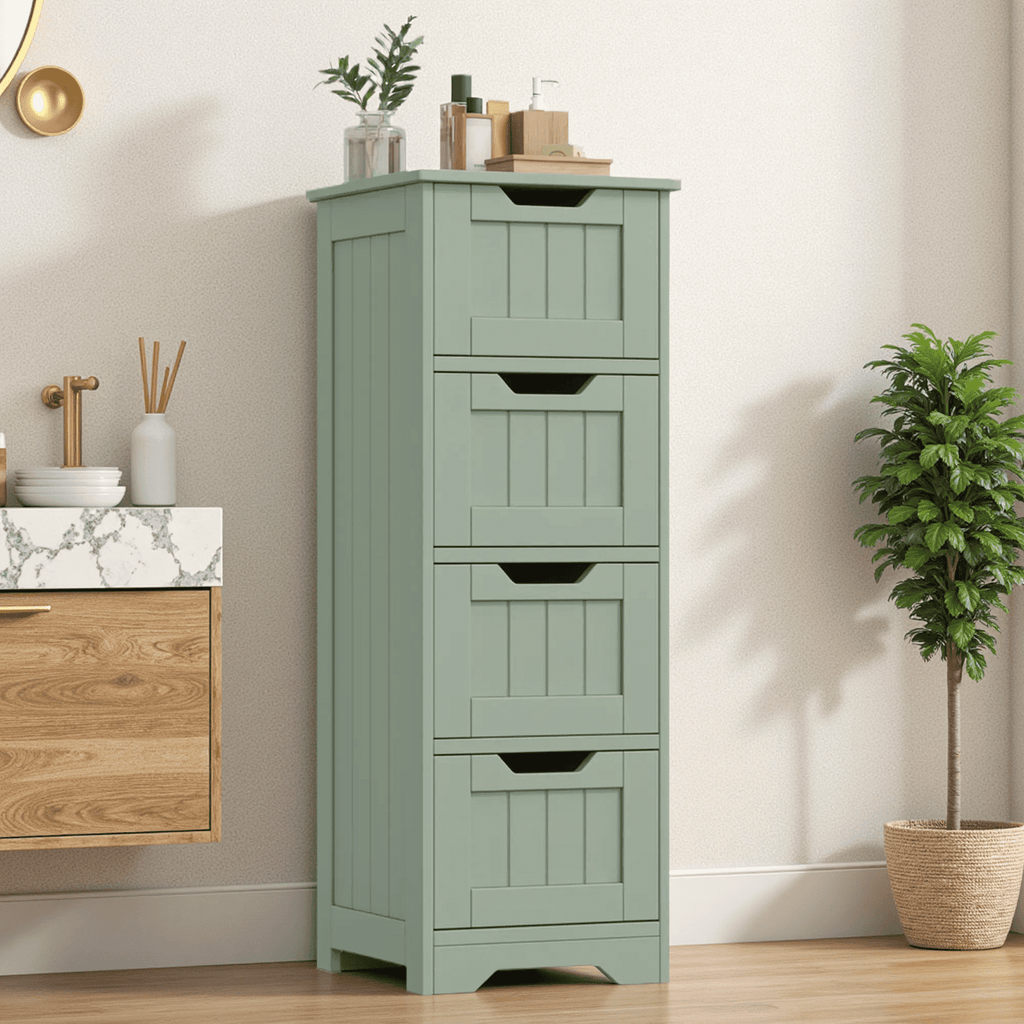 Homfa Bathroom Storage Cabinet, Free Standing Narrow Cabinet with 4 Drawers Entryway Storage Organizer for Living Room Bedroom, Green