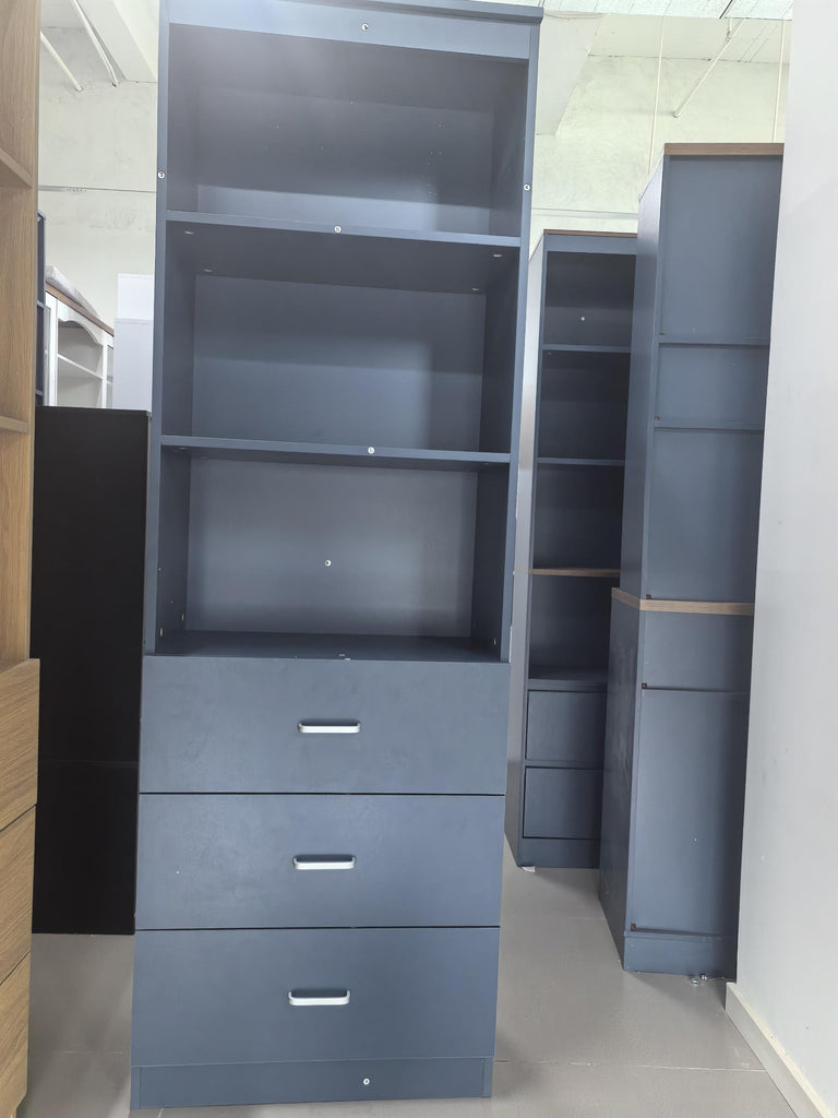 Homfa 71" Tall Bookcases with 3 Large Drawers, 3 Tier Wooden Storage Bookshelf for Living Room Home Office, Blue