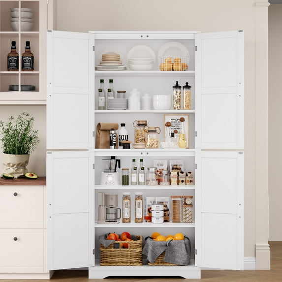 Homfa 71'' Freestanding Pantry Cabinet with 4 Doors, Modern White Storage Cabinet for Dining Room Living Room