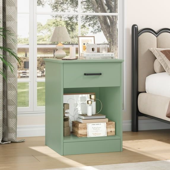 Homfa Nightstand with Drawer£¬2 Tier Modern Night Stand Side Table for Bedroom Living Room, Green