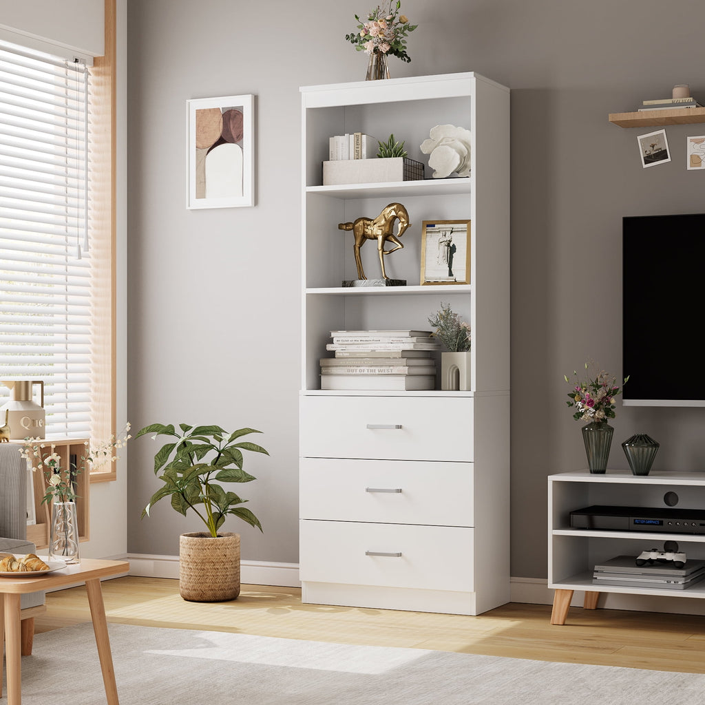 Homfa White Bookshelf and Bookcase with Drawers for Home Office